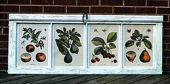 Recycling at its best – I adapted an old window from my vacation house and created a framed wall hanging perfect for my kitchen. The window was refinished using a crackle paint technique and botanical renderings were placed behind each pane. It was a messy project, but the end result was worth it! |